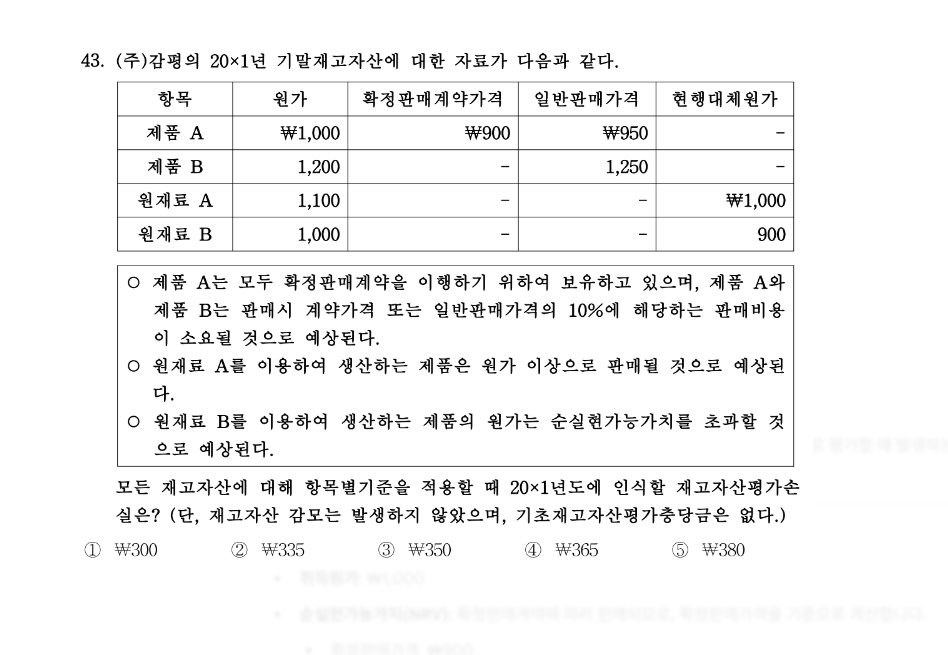 | 2024년 감평사 회계학 44번 기출 매출원가 계산 문제 풀이 (0) | 2025.10.02 |
