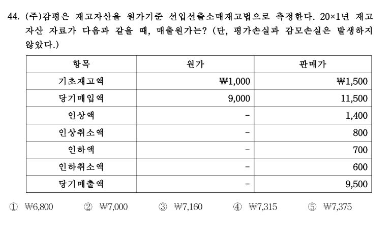 | 2024년 감평 회계학 기출 43번 재고자산평가손실 문제 및 풀이 (0) | 2025.10.02 |
